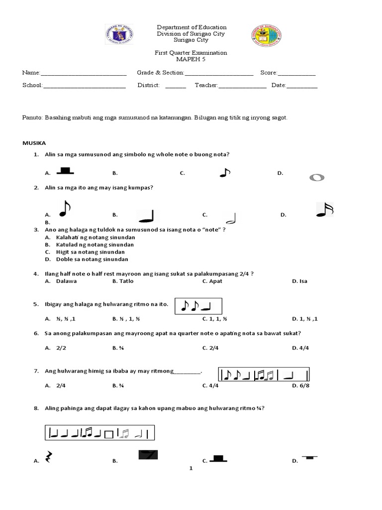 1St Periodical Test Grade 6 All Subject 1St Perioidc Test. Samakatuwid ang notang may tuldok ay nangahulugang naragdagan ang halaga nito ng kalahating kumpas 12. Hating nota - 2 na bilang ng.