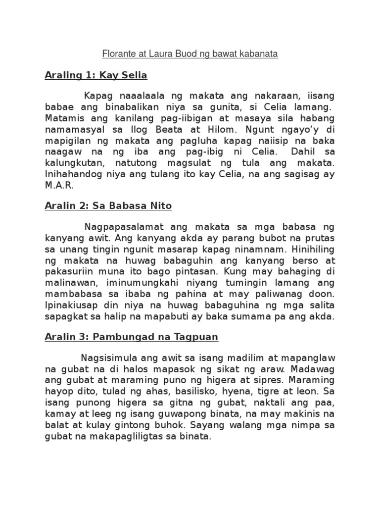 3 on a question Florante at laura buod ng bawat kabanata. Daing Ng Pusong Nagdurusa Buod Saknong 33 54. Si Francisco Baltazar ay sinulat ang kuwentong ito para sa kaalaman ng mambabasa na kung paano niya ipinaglaban ang pagibig niya kay Maria Asuncion Rivera MAR na tinawag niyang Selya.